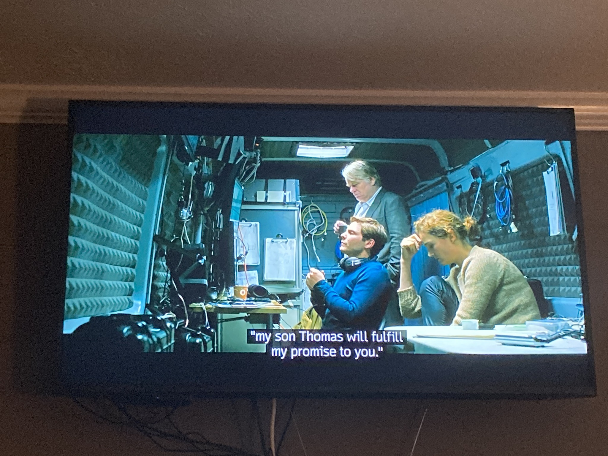 Here I am enjoying the fruits of my labors and watching A Most Wanted Man. The subtitle search feature of Plex is nifty!